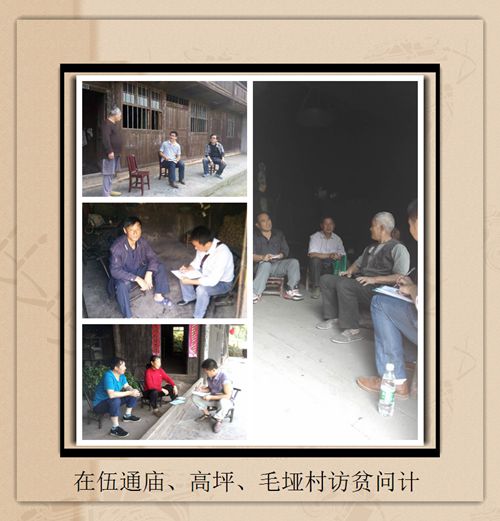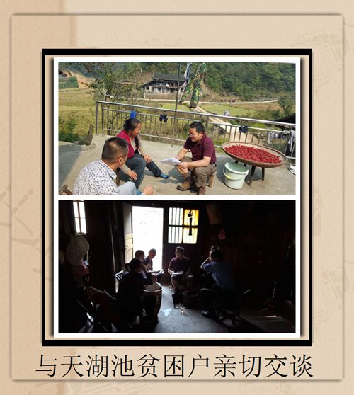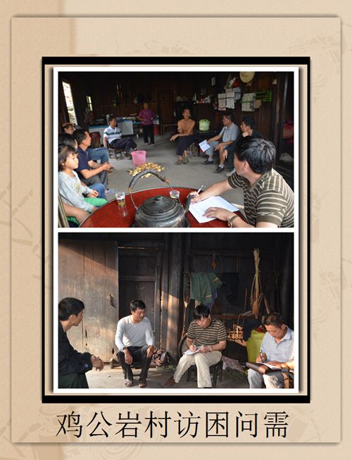 在鸡公岩村,县林业局班子成员向宗师重点走访了陈精元、向兴德、何本文、向丰生4户结对贫困户,对他们的家庭情况、生产情况、收入情况等做了详细了解,每到一户都给他们打气加油,鼓励他们树立脱贫信心,抓住当前精准扶贫机遇,因地制宜选准增加收入门路,力争让贫困户早日脱贫。针对走访情况,驻村工作队认真梳理,分门别类,做好结对帮扶计划,更好地实现有效扶贫。同时,立足长远,根据实际情况,对村里基础设施、林业产业发展等工作规划进行微调并完善,严格按照"一进二访"及驻村帮扶的要求,务实开展工作,帮助村民脱贫致富。